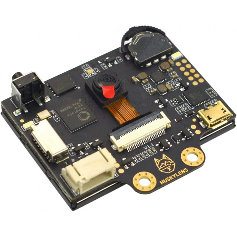 Utiliza un procesador de IA Kendryte K210 y cuenta con conexiones I2C y UART para interactuar con Arduino, micro:bit o Raspberry Pi sin necesidad de programar algoritmos de inteligencia artificial complicados.
